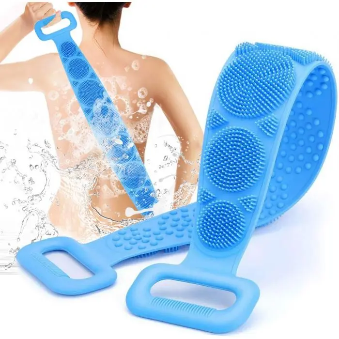 El cepillo de ducha de silicona consta de dos partes. Ecológico, duradero, no tóxico, puede exfoliar y masajear la piel de manera efectiva.