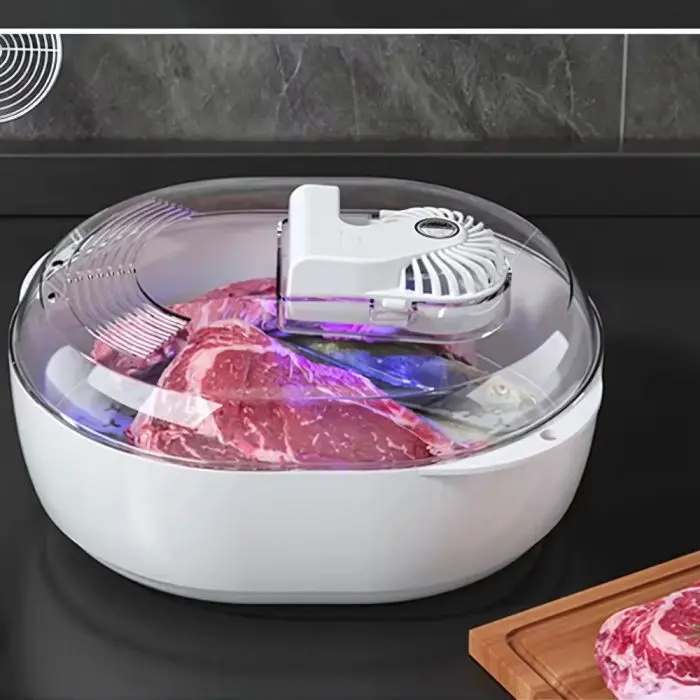 La caja de descongelación para carne congelada se puede utilizar para descongelar rápidamente alimentos congelados, también es adecuada para limpiar frutas y verduras. 1. Hecho de ABS y polipropileno, higiénico y más seguro de usar.